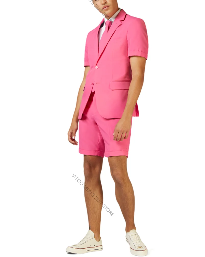 Короткие рукава с шортами летние мужские костюмы/пляжная свадебная одежда для жениха/Mr. Розовый, модный, новейший дизайн, цвет, размер, сделанный на заказ![]()
