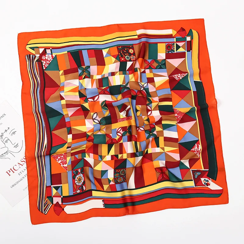 Женский маленький атласный шелковый шарф 70x70 см, квадратный платок с принтом, женский шейный платок, бандана на шею, облегающий галстук, шарфы, шали