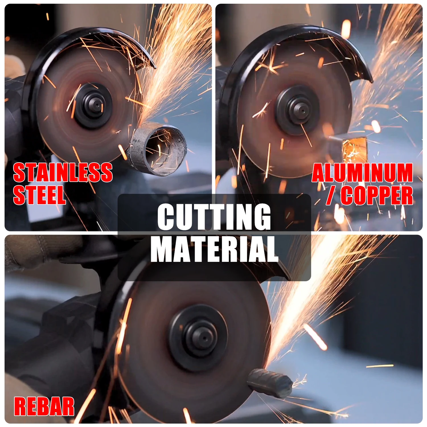 【Универсальное применение 】Жесткие абразивные режущие диски идеально подходят для сверхбыстрой и чистой резки углеродистой стали, нержавеющей стали, железа, меди и всех других черных металлов.