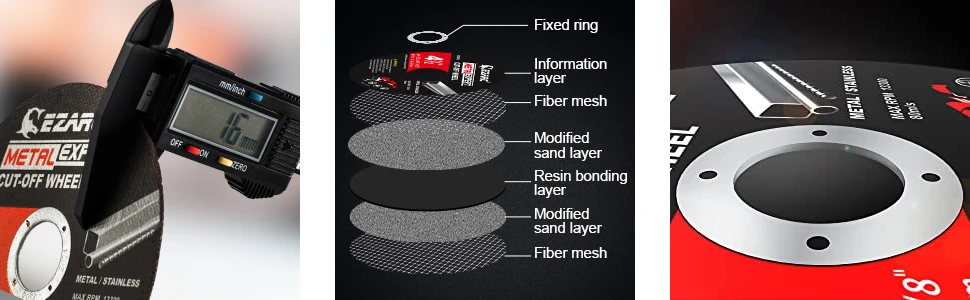 Ультратонкий дизайн 1/16 "толщины отрезных колес обеспечивает быструю, точную и чистую производительность резки с минимальными заусенцами и отходами материала.