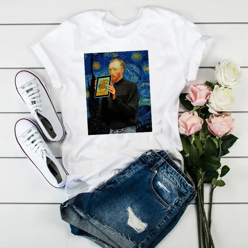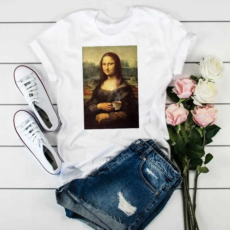 Женская футболка с забавным рисовым принтом круглым вырезом | одежда