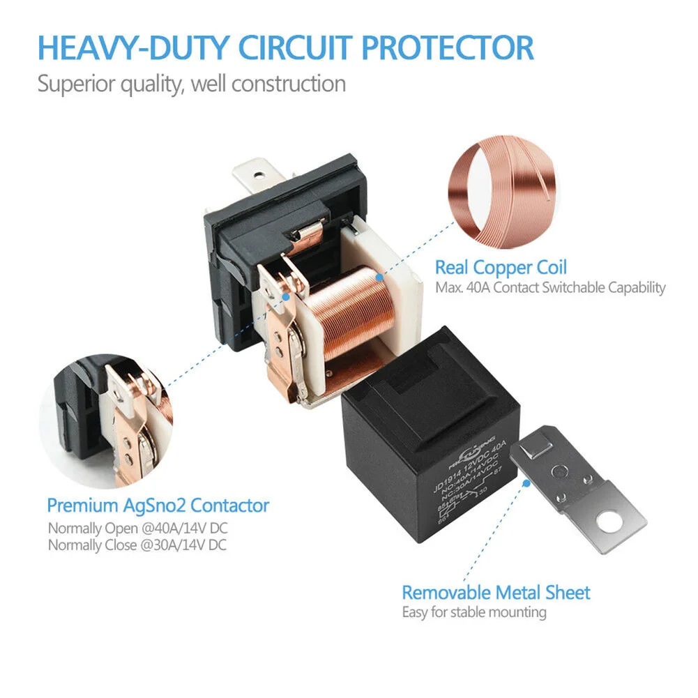 * 1. 5-контактный SPDT 12 в 40 A реле и предварительно смонтированный проводка для релейного разъема.