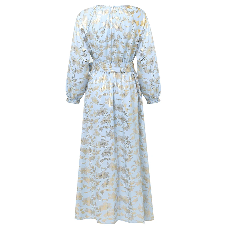 Название:Модное мусульманское женское платье с золотым принтом, весеннее длинное платье с длинным рукавом, повседневная синяя юбка с эластичным поясом, халат, вечерние платья большого размера для женщин