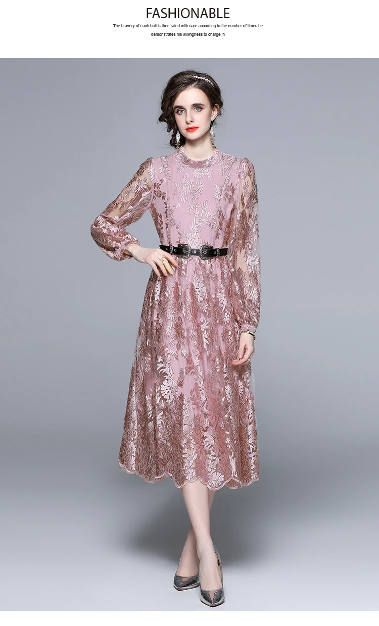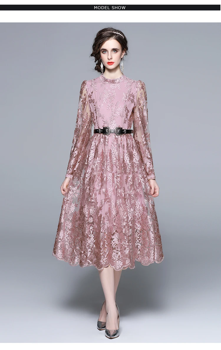 Платье SMTHMA из новой коллекции модной одежды с вышивкой на сетке для женщин воротником стойкой рукавами "летучая мышь" высокой талией и поясом средней длине.