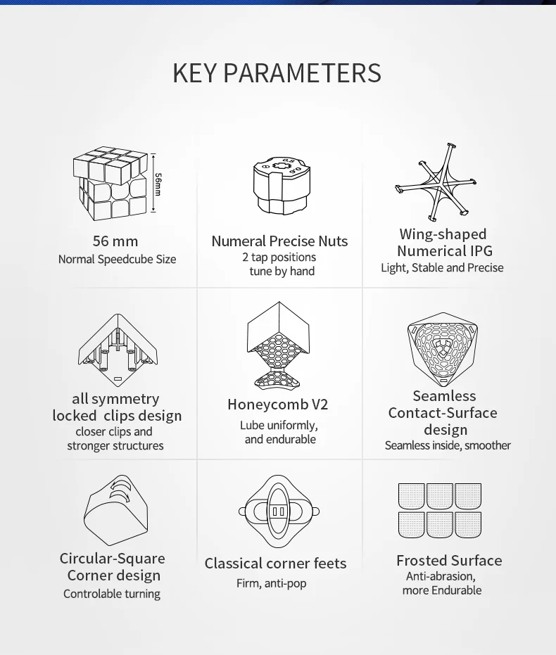Отклонение от оригинального сердцевины GAN, в сочетании с усиленными светло-голубыми пластиковыми и стальными винтами. Обеспечивает более высокую стабильность с более высокой перпендикулярностью и более высокой точностью для кубов. Видимая, измеряемая Система настройки, и больше никаких дополнительных инструментов не требуется. Вы можете настроить вручную.