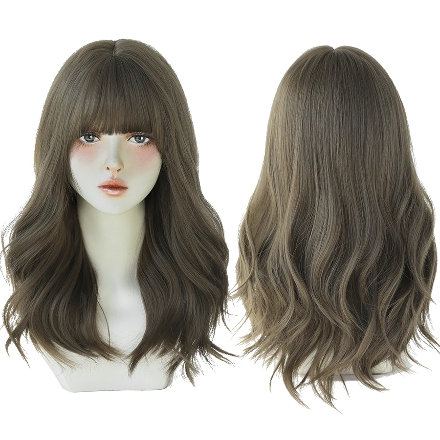 Парик женский Шелковый средней длины натуральный черный кудрявый Модный Топ для