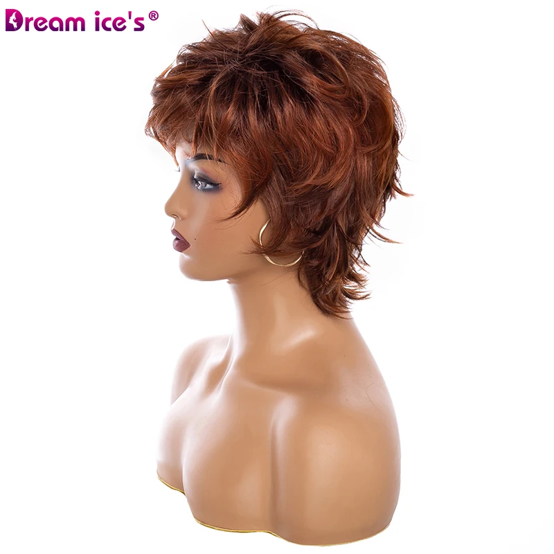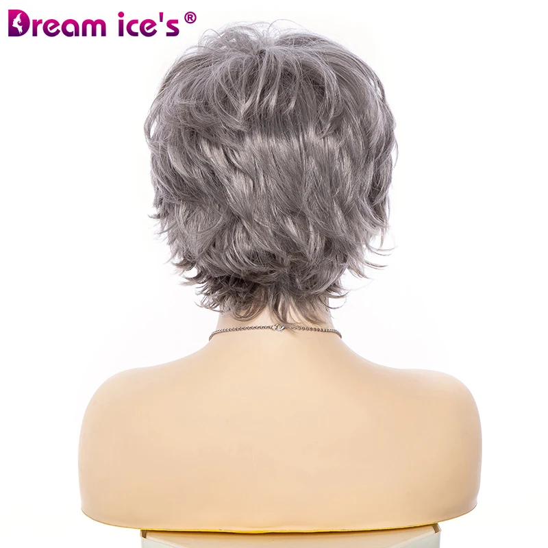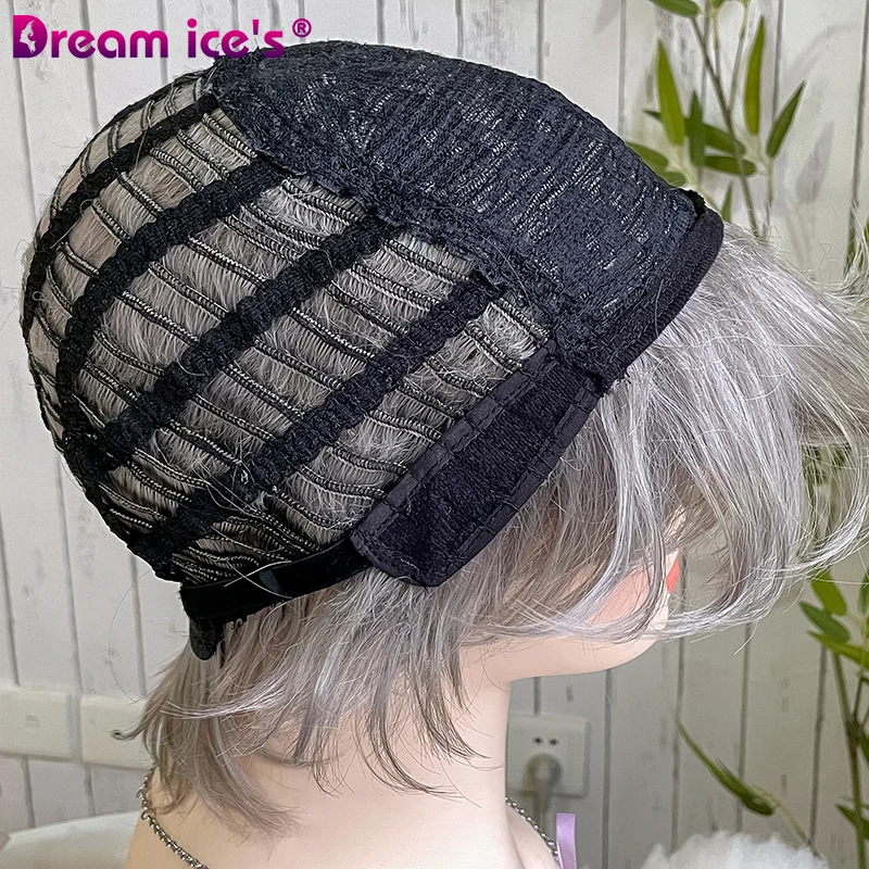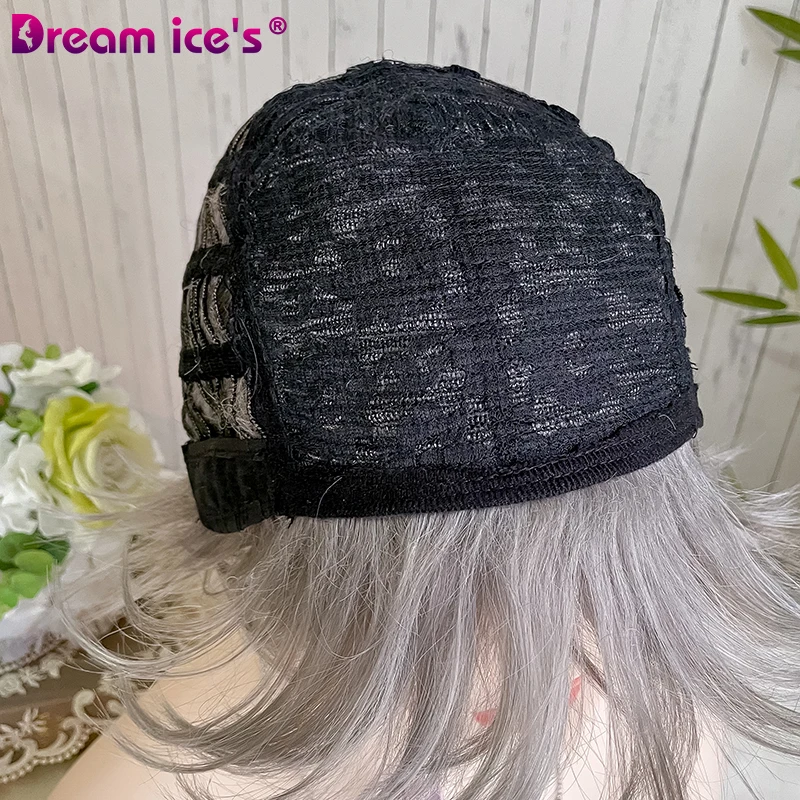 Короткие парики из коричневого и серого синтетического волокна с челкой для женщин, натуральные волнистые прямые волосы без клея, парик для косплея, для повседневного использования, Dream ice's