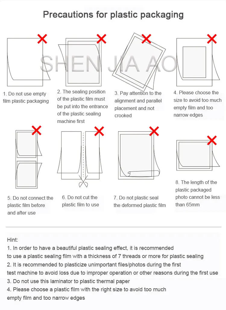 1. Для того, чтобы иметь красивый эффект пластиковой герметизации, рекомендуется использовать пластиковую уплотнительную пленку толщиной 7 нитей или более для пластиковой герметизации