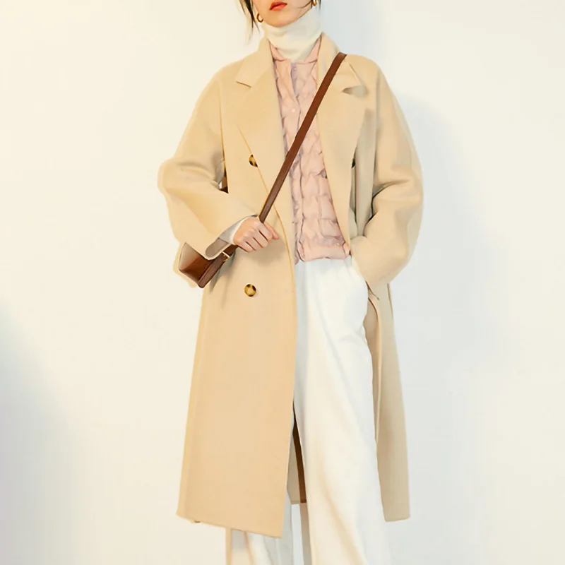 Женское твидовое пальто Wimter длинное приталенное из 100% шерсти с регулируемым