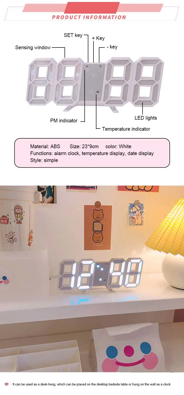 Аккумулятор: CR2032 (используется для хранения времени, когда мощность отключена (не входит в комплект), часы питаются от USB кабеля)