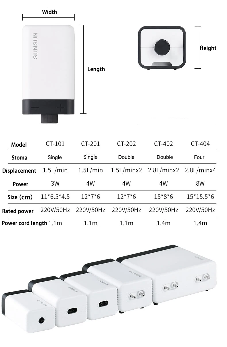 SUNSUN CT Series Aquarium Aerator Ultra Silent Aquarium Air Pump Air Compressor Oxygen Airpump Single & Double Outlet