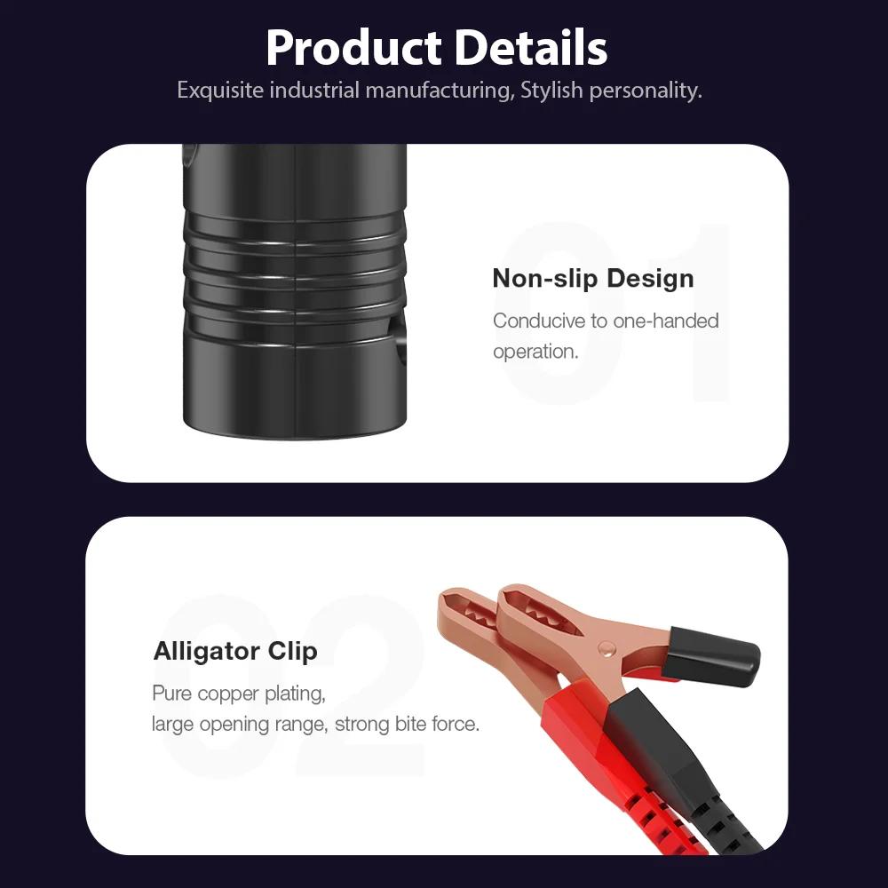 6. 【Защита от обратной полярности 】медные зажимы Премиум-качества имеют полярность обратной защиты и искробезопасность, если кабели случайно подключены для стабильного и безопасного соединения в процессе тестирования.