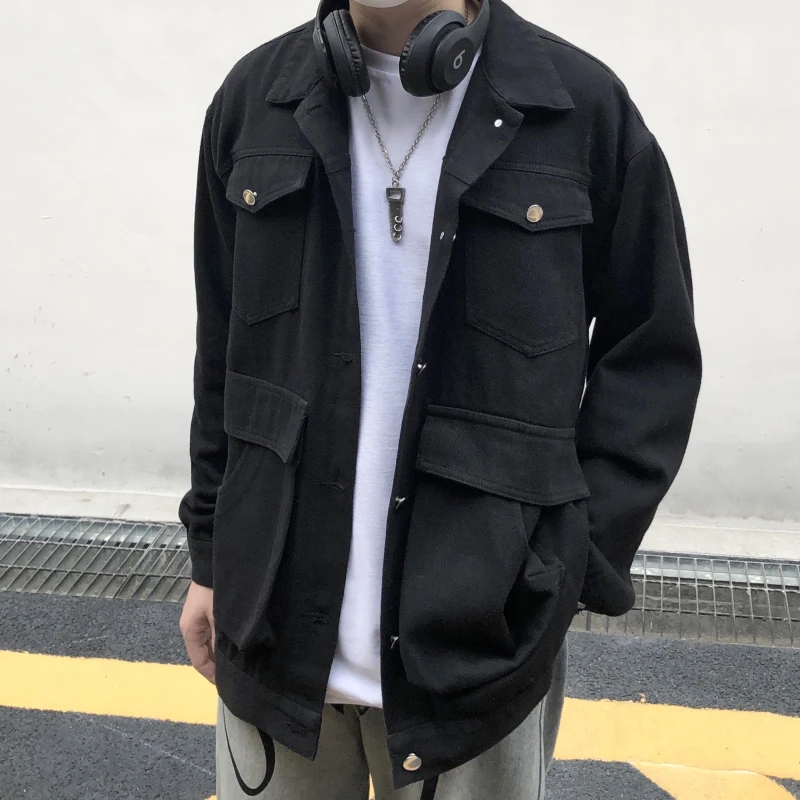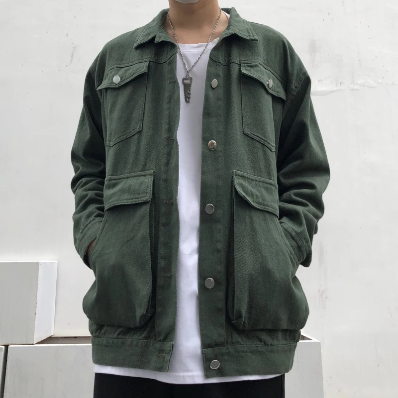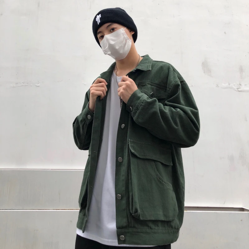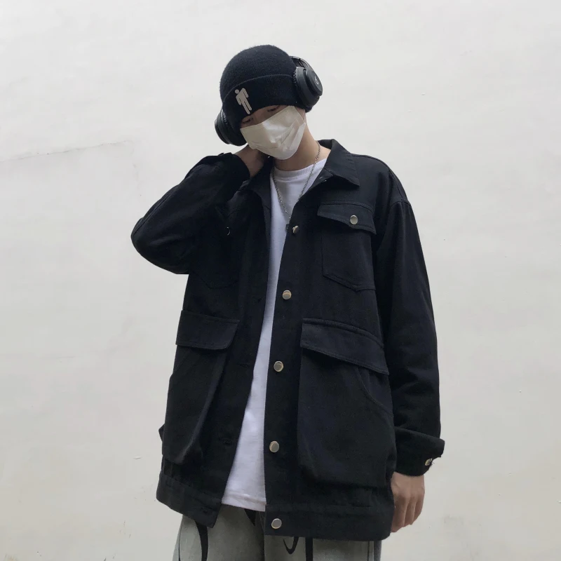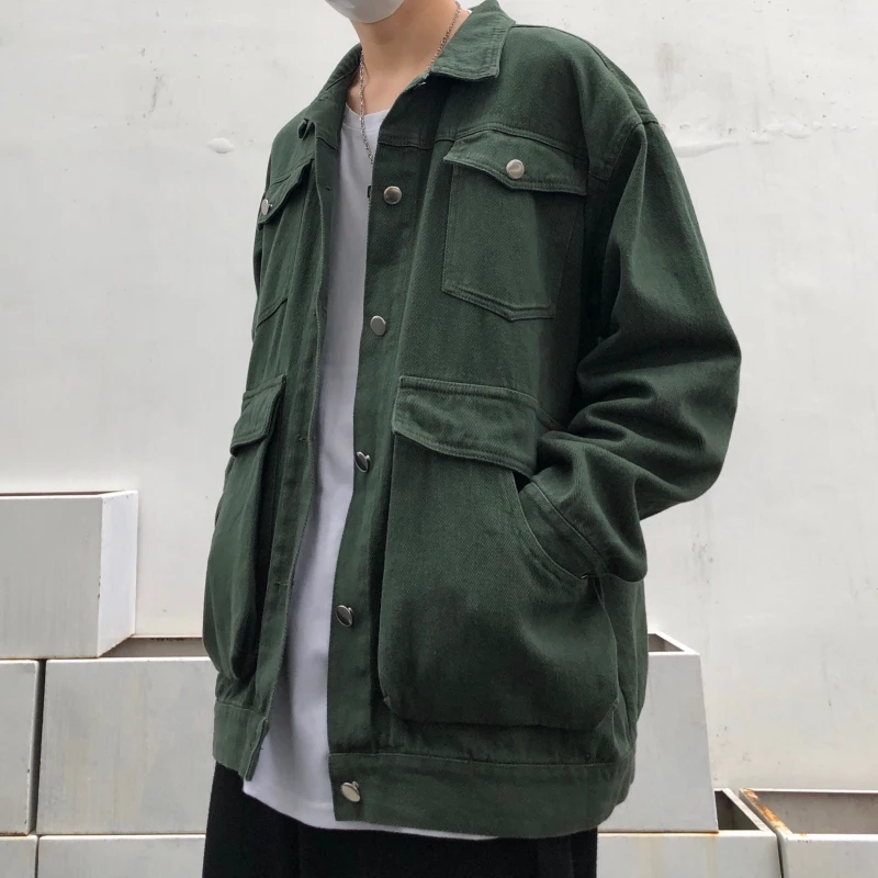 Черный Армейский зеленый унисекс панк готическое джинсовое Пальто Harajuku для женщин и мужчин с большими карманами на пуговицах с длинным рукавом хипстерские пальто сафари Стиль Топ
