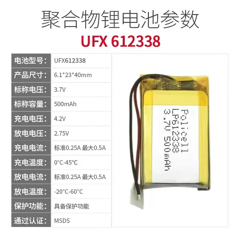 UFX612338 3,7 v 500 mah литий-ионный полимерный аккумулятор косметический инструмент GPS локатор KC сертификация с защитной игрушечная тарелка прочный навигатор