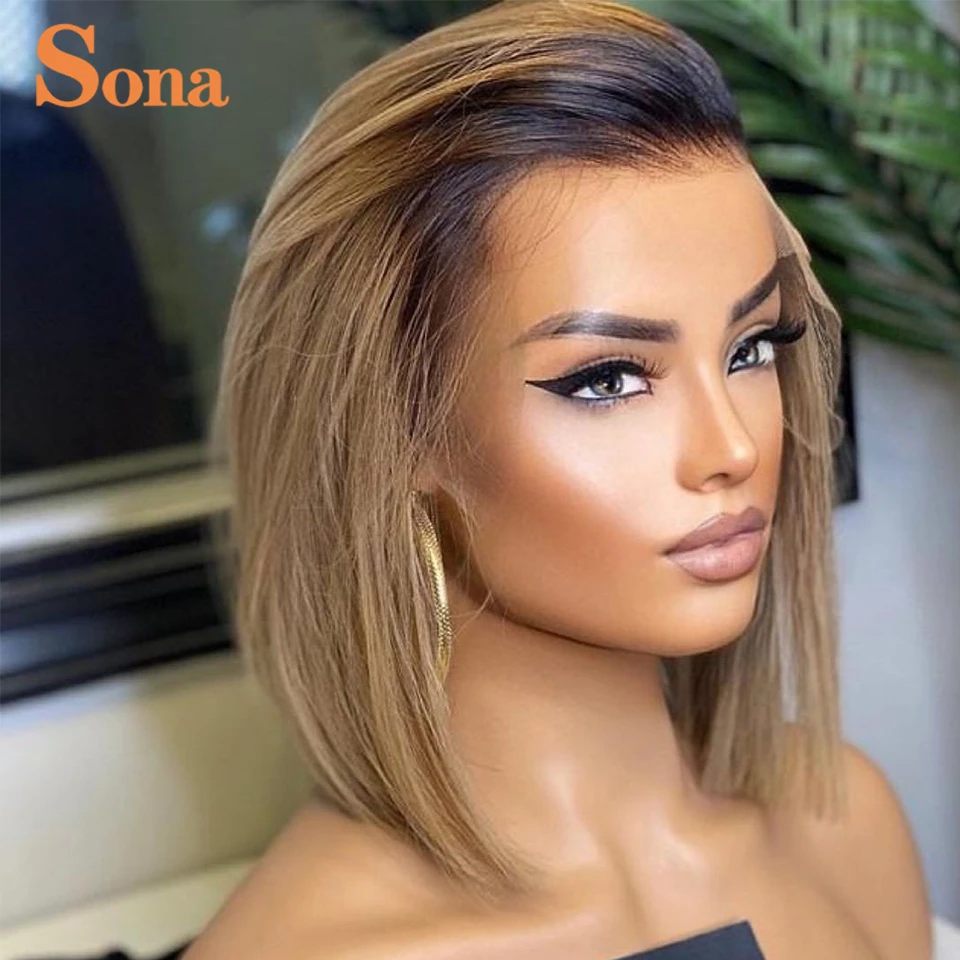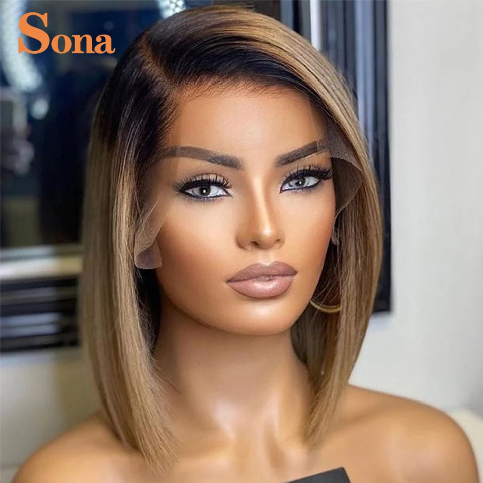 Короткий кудрявый парик из человеческих волос с перехлёстом 13x1 прозрачный
