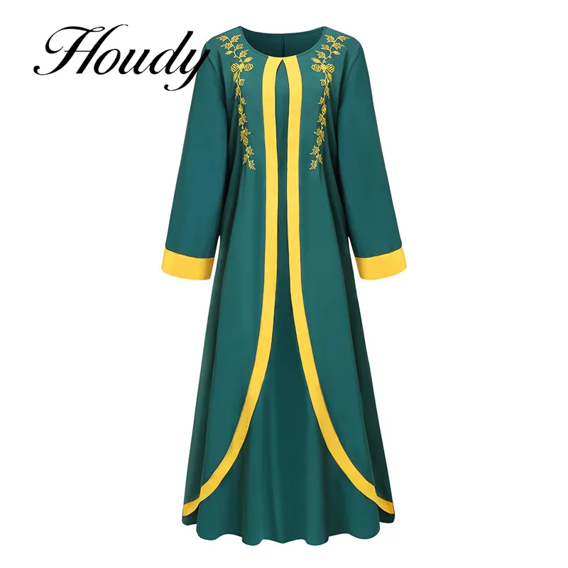 Название: Новинка 2022 года; Сезон весна-лето; Женская мода в арабском стиле; V-образный вырез; Золотые Прошитые рукава; Вышивка; Свободные рукава; Цвет зеленый; Вечернее платье с длинными рукавами; Прямые продажи с фабрики; Поддержка настройки