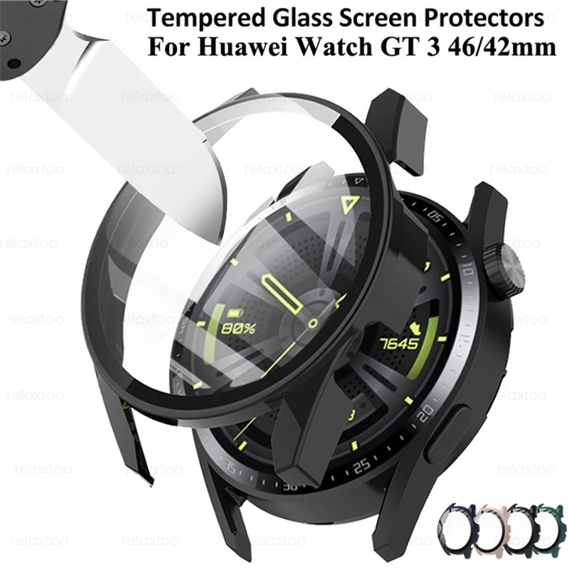 360 ° полный защитный чехол для Huawei Watch GT3 42 мм 46 мм переднее стекло + Жесткий PC бампер противоударный чехол Hauwei Watch GT 3