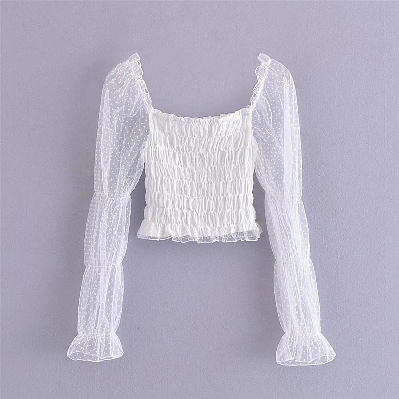PUWD Женская белая рубашка из органзы 2022 Весенняя модная женская рубашка с квадратным воротником и длинным рукавом в стиле пэчворк, женская тонкая сексуальная укороченная блузка