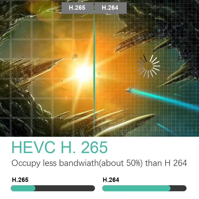 Новая технология H.265 HEVC 10bit использует передовые методы для улучшения связи между codestream, качеством кода, задержкой и сложностью алгоритма для оптимальных настроек. Он может загружать быстрее и воспроизводить больше hd-видео.