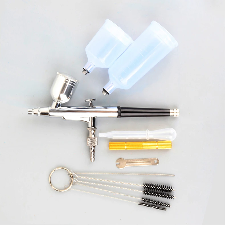 Наборы Аэрограф Двойного действия. Это позволяет пользователям определить количество воздуха и жидкости, выпущенных с помощью простых движений пальцев. Обеспечивает исключительное распыление и точное управление распылением.