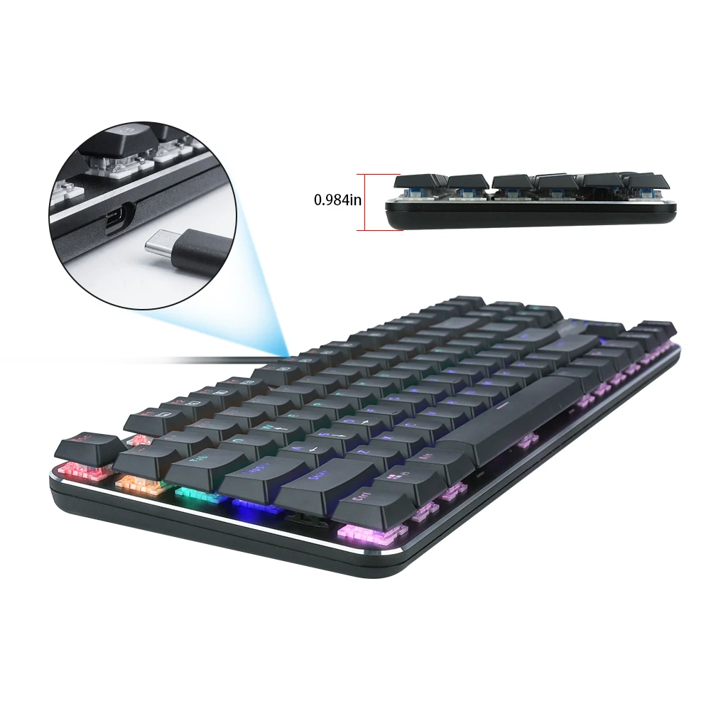 Низкопрофильная Механическая игровая клавиатура, ультра тонкая, Clicky синяя светодиодная подсветка, алюминиевая панель 87 клавиш компактная (US-Layout) клавиатура для PC Gamer Typist