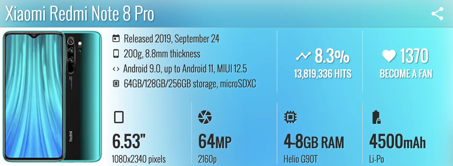 Основная камера | 64 мп, f/1,9, 26 мм (в ширину), 1/1.72 ", 0.8мкм, PDAF | |