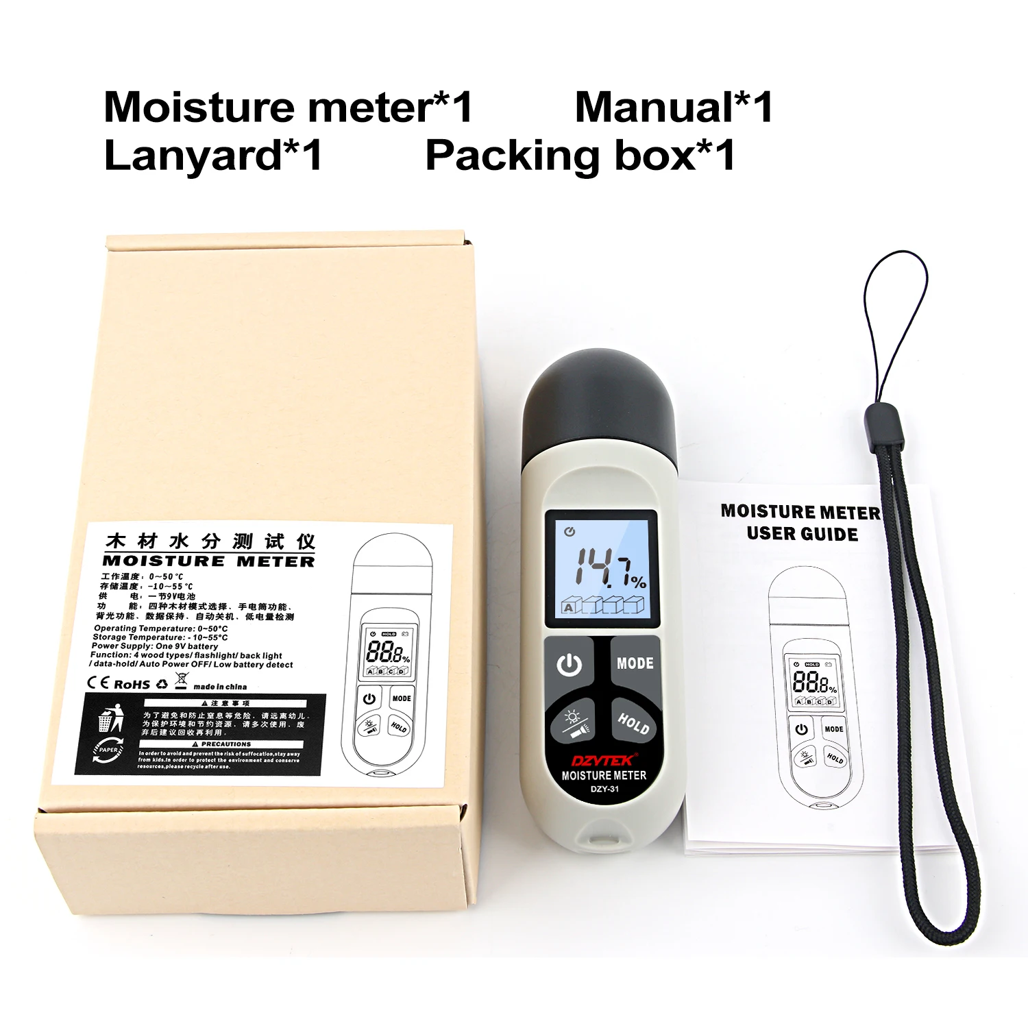 Продукт в основном является новым, мини-дровяным водным молекулярным тестером. Может использоваться для проверки влажности дороги цемента, влажности бетона, мебели, картонных коробок, лекарственных материалов, строительного материала, влажности тройника