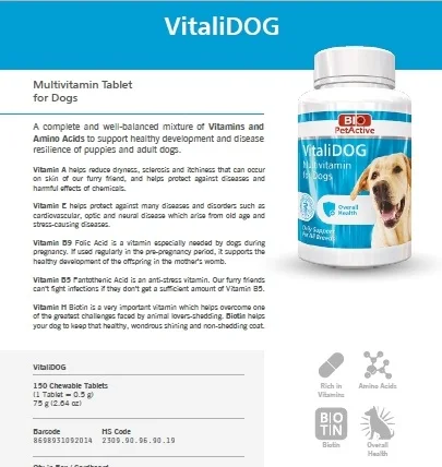 Полная и хорошо сбалансированная смесь витаминов и аминокислот для поддержки здорового развития и заболеваний упругости щенков и взрослых собак.