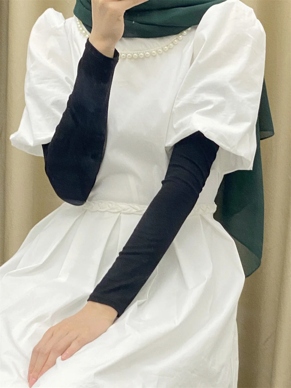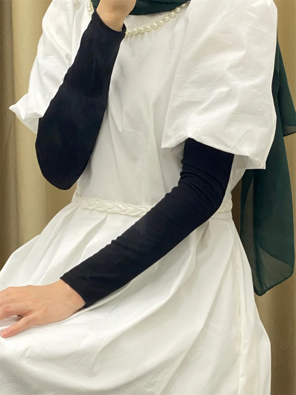 Женская мусульманская одежда с рукавами-крылышками, малайзийский женский чехол с УФ защитой от солнца, мусульманская Модальная база, мягкий эластичный ледяной рукав, регулируемый