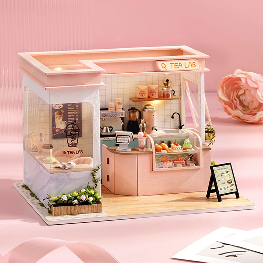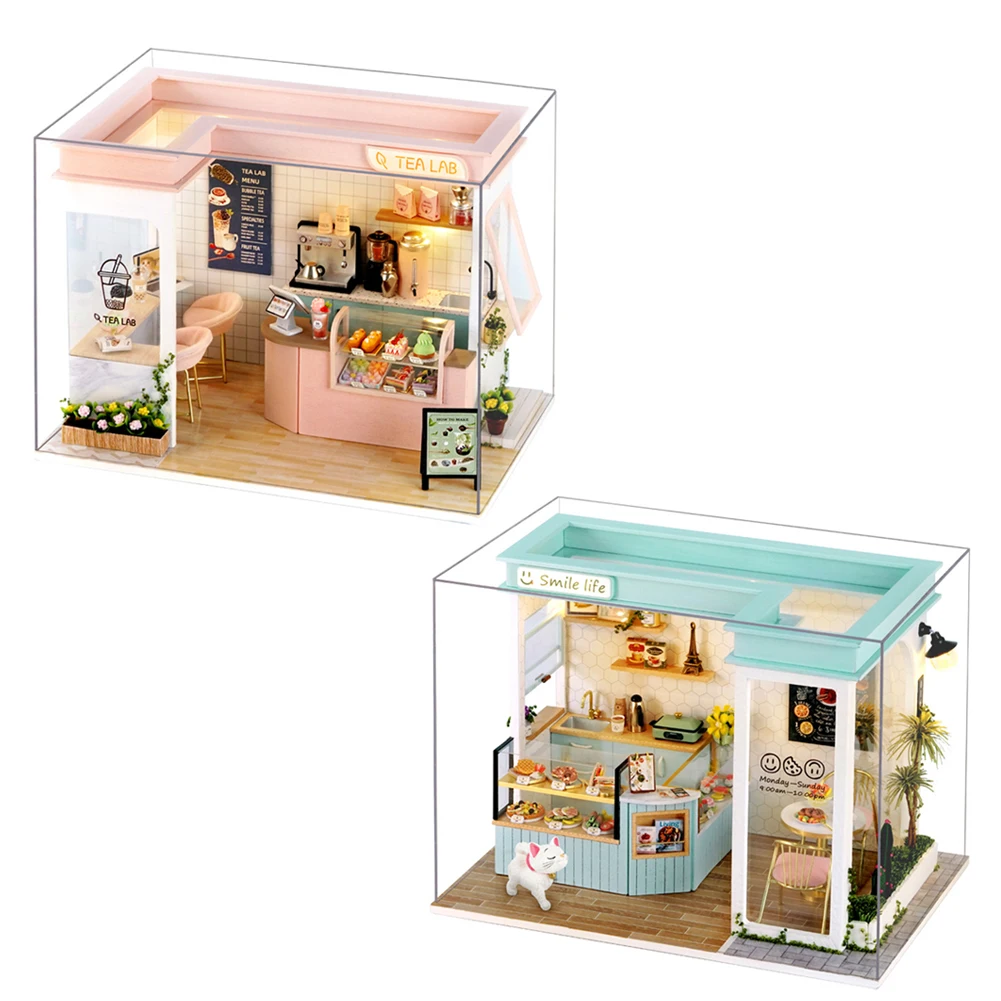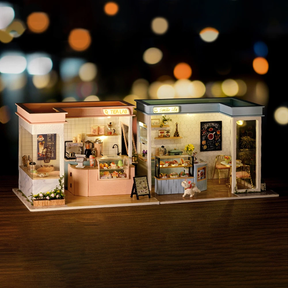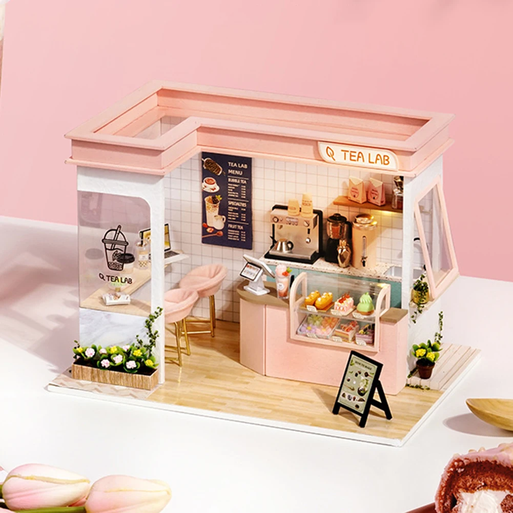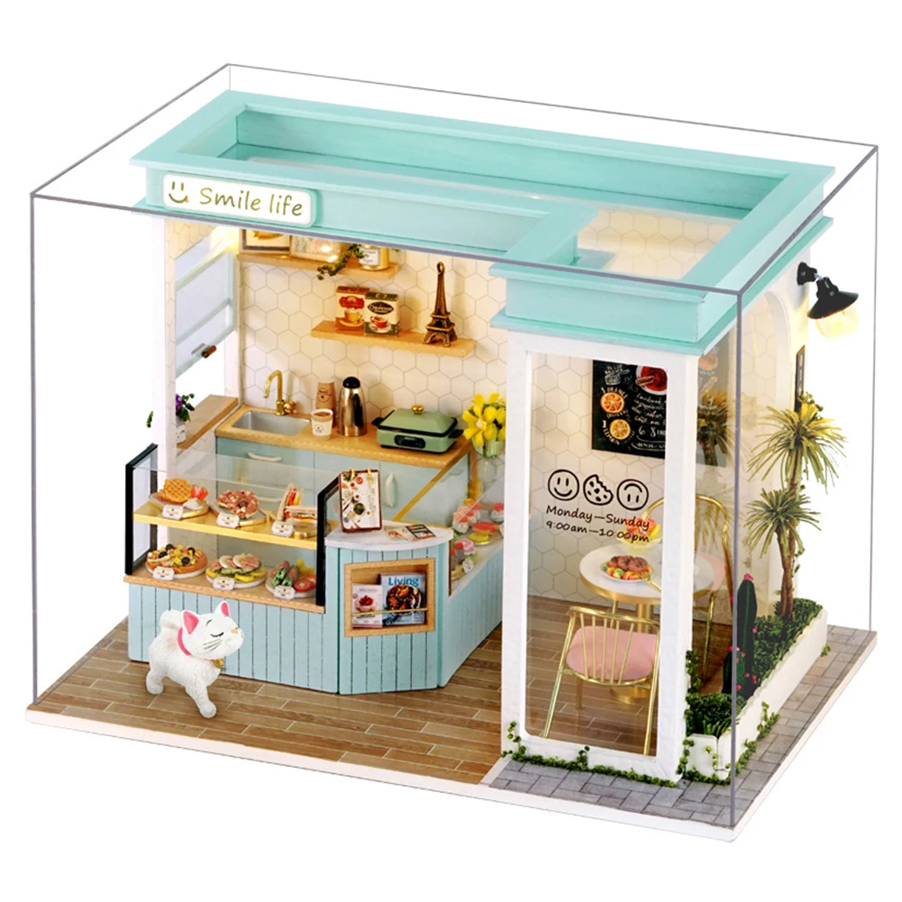 Деревянный кукольный домик сделай сам миниатюрный набор магазин кроликов цветов