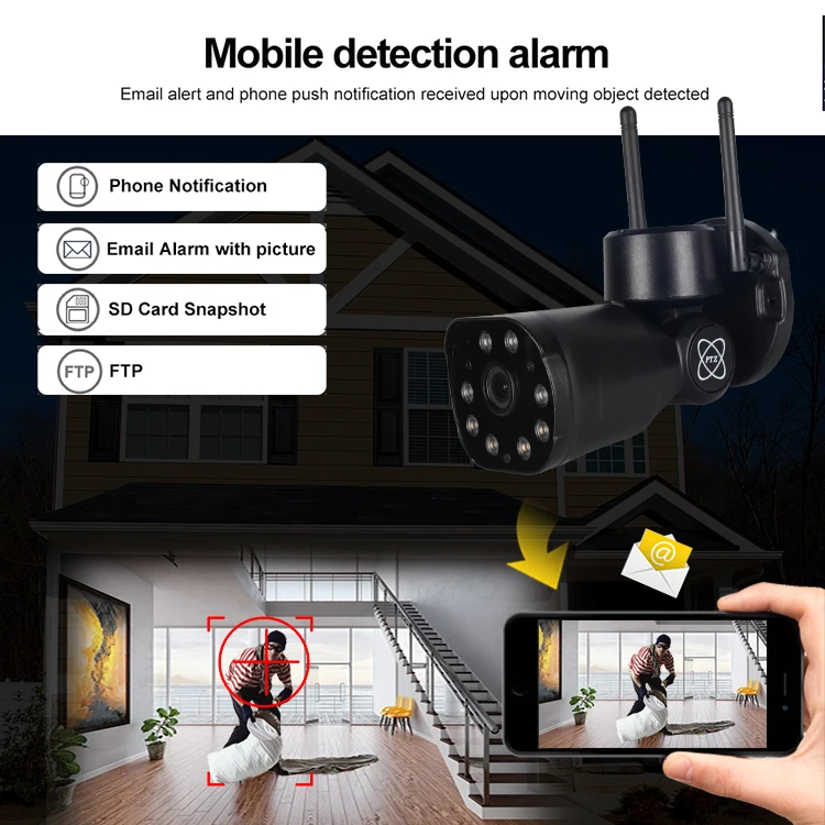 Оповещение по электронной почте и уведомление по телефону, полученное при обнаружении движущихся объектов