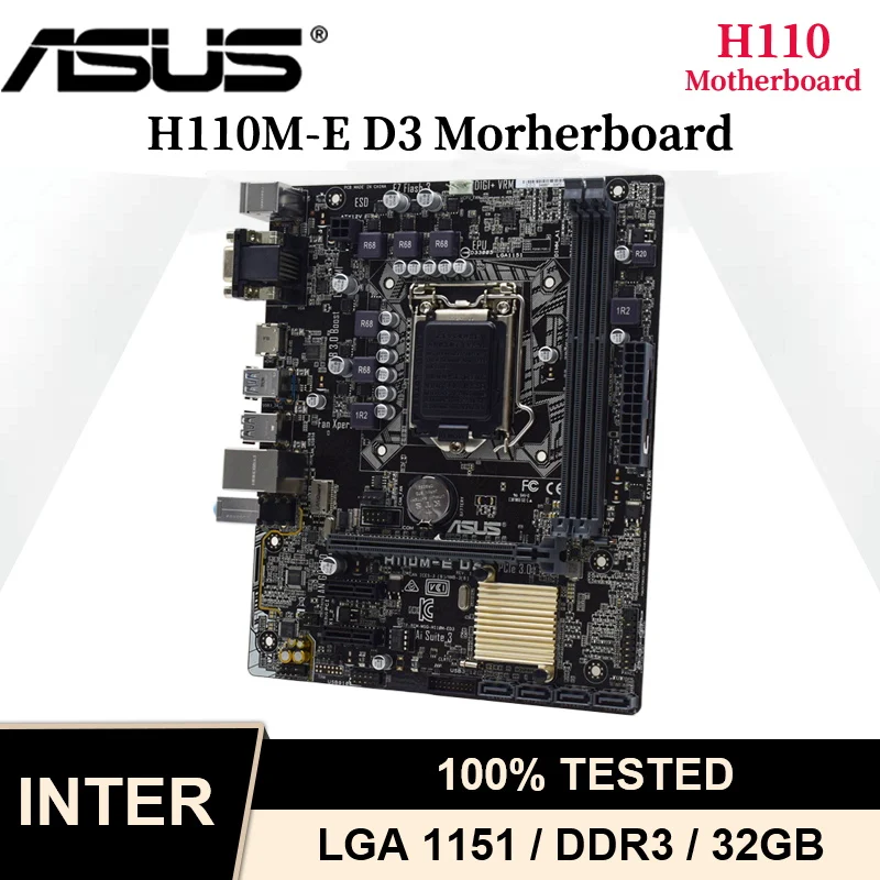 Десктопная Материнская плата ASUS H110M-E D3 LGA 1151 Intel H110 DDR3 Core i7/i5/i3 процессоры VGA SATA III