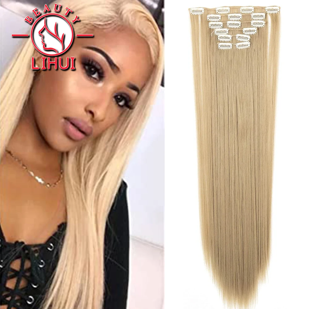 Стиль: 16 зажимов для наращивания волос, 6 отдельных частей, 2-3 комплекта для полной головки, прямые и вьющиеся волнистые