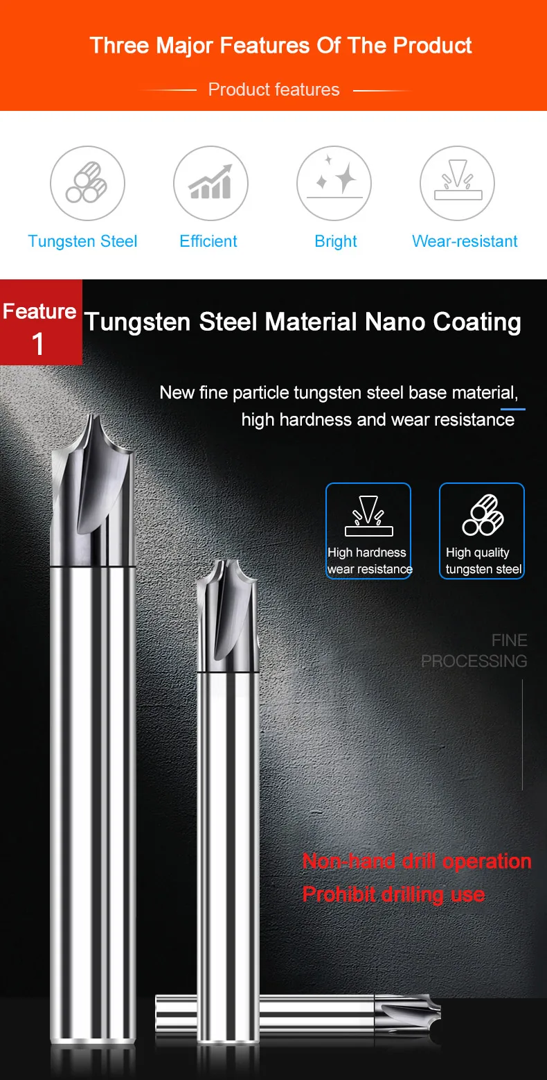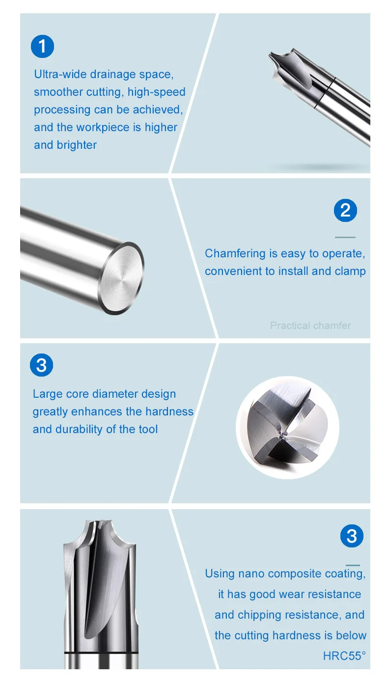 HuHao D1-D3 mm Taper Flat Bottom Milling Cutter 3 Flute CNC Tools Chamfer End Mill Tungsten Router Bit for Aluminum Copper Alloy |