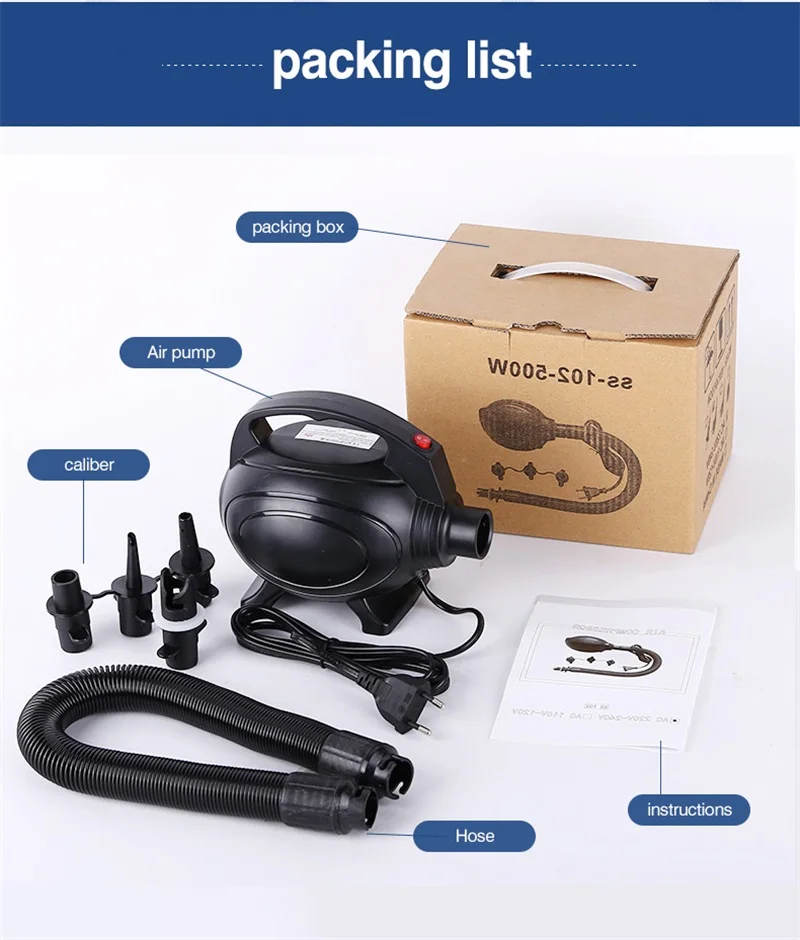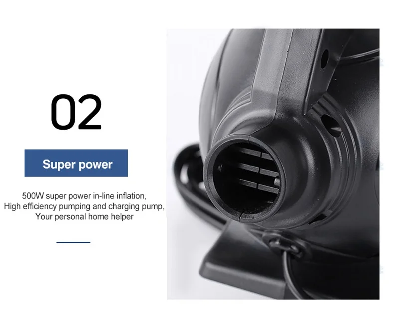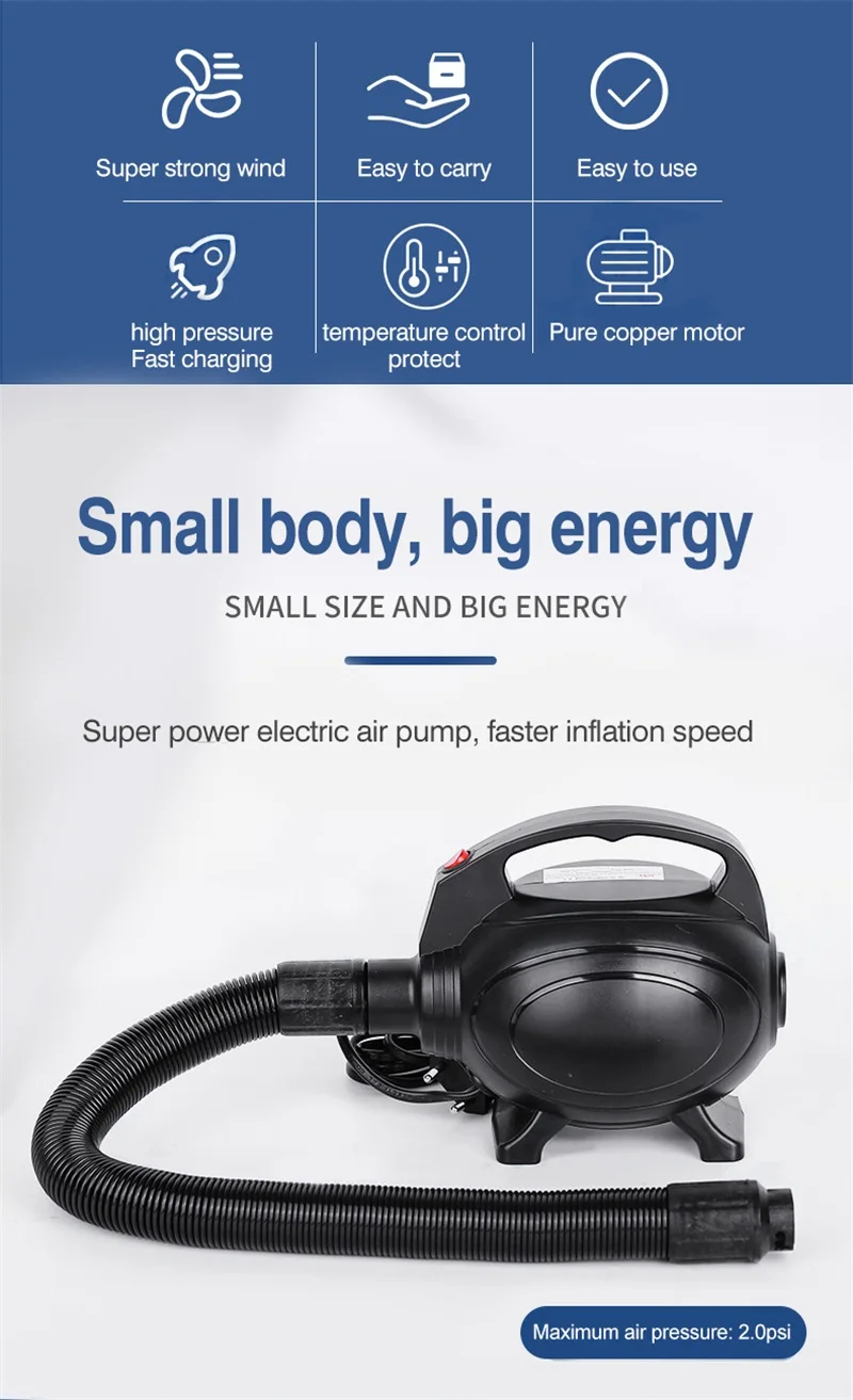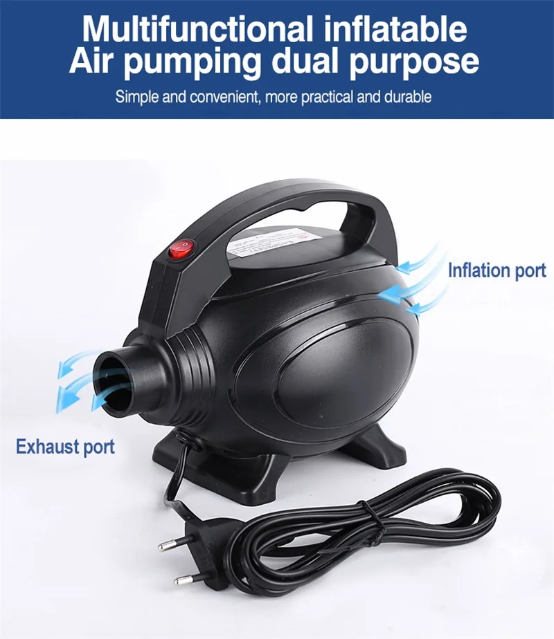 2. Это высокоемкий вентилятор низкого давления, используемый для надувания/дефляции продуктов высокого давления (таких как надувные плоты, надувные лодки, моторные лодки, надувные коврики для йоги и т. д.). Этот тип вентилятора не может использоваться непрерывно в течение длительного времени. Непрерывная работа более 30 минут может перегреваться и легко повредить.