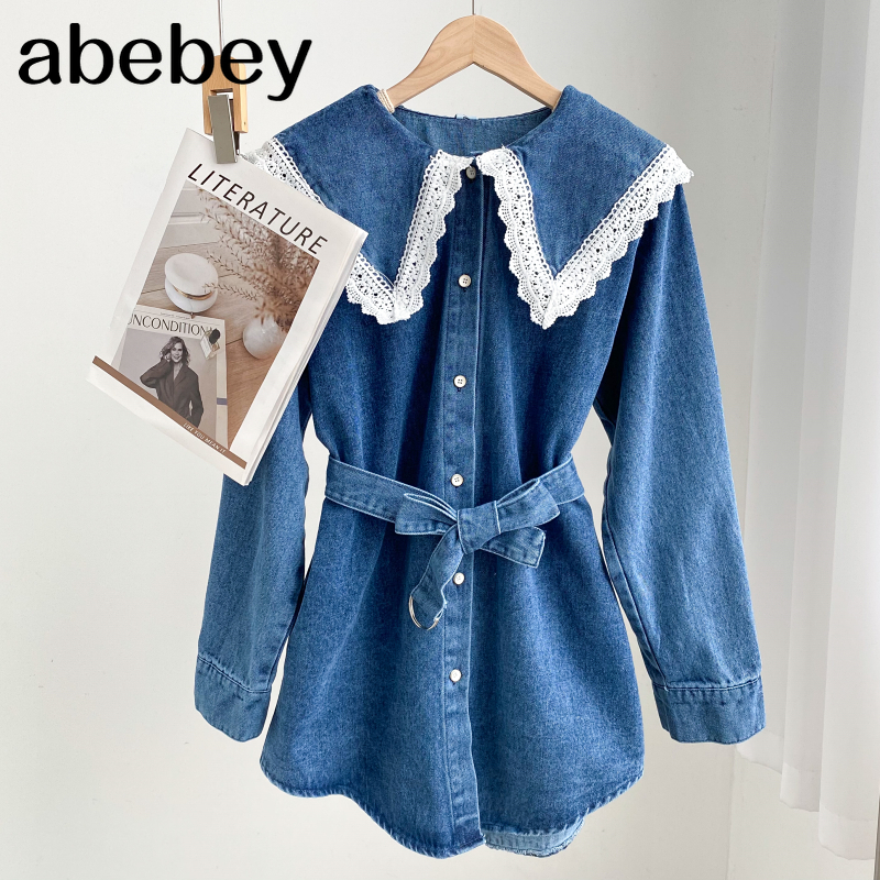 Brand NameabebeyOriginMainland ChinaMaterialPolyesterMaterialDenimGenderWOMENStyleCasualSleeve Length(cm)FullPattern TypeSolidSleeve StyleRegularDecorationLaceSilhouetteA-LINEWaistlineempireDresses LengthKnee-LengthSeasonSpring/AutumnNecklinePeter pan CollarMeasurement unit100000015Each pack1