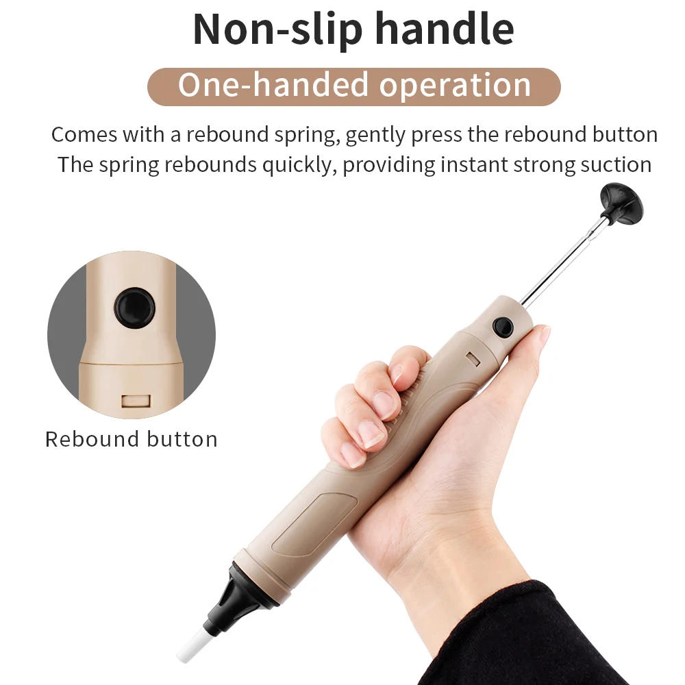 • Мощная присоска для припоя: с вакуумом высокого давления, который помогает эффективно удалять припой.