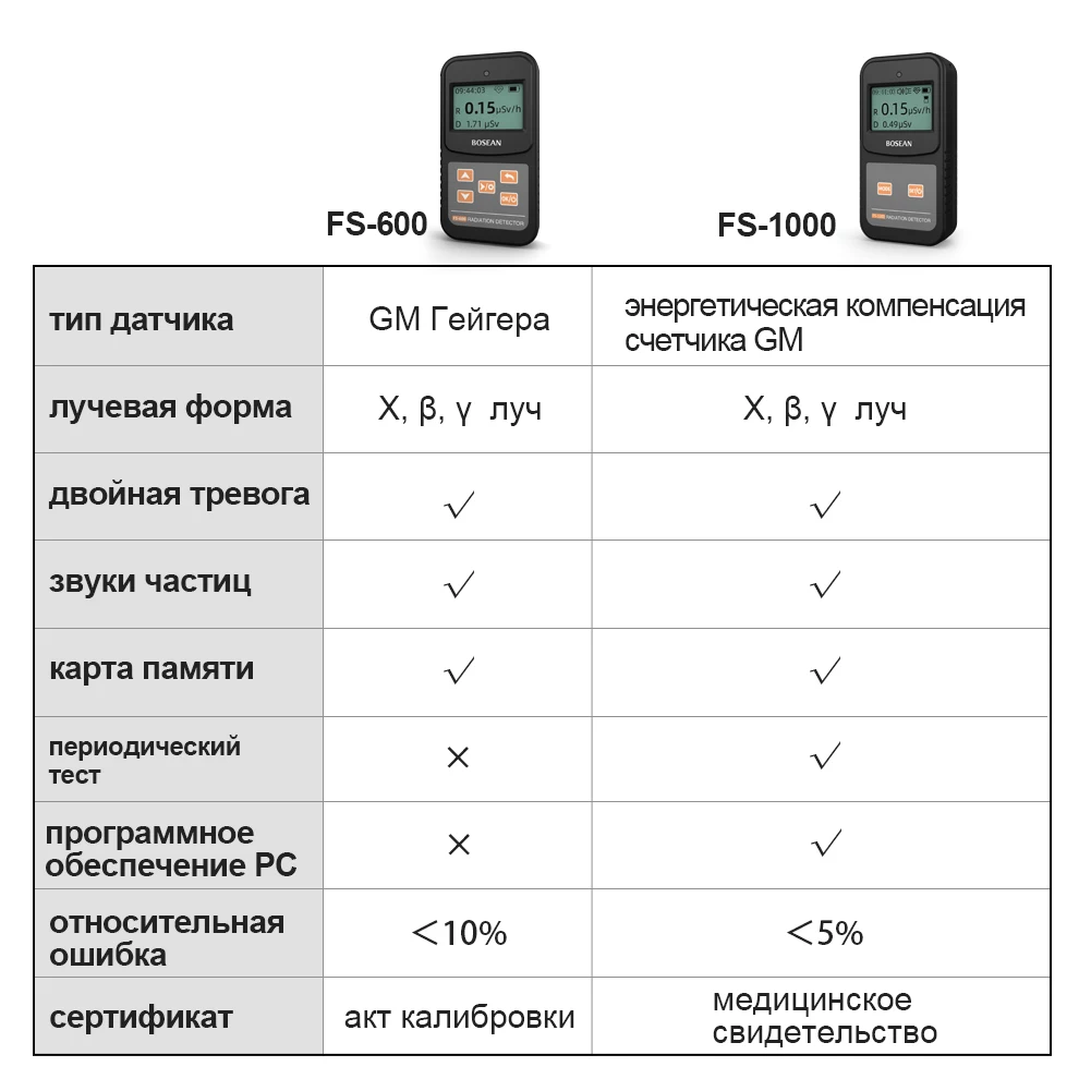 Обнаруживаемые виды: бета, гамма, рентгеновский