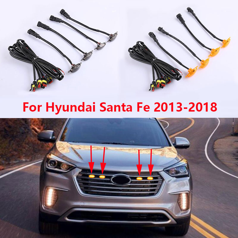 4 шт./компл. для Hyundai Santa Fe Santafe 2013 2014 2015 2016 2017 2018 светодиодный автомобильный передний решетчатый Янтарный светильник Raptor Style Lamp Kit