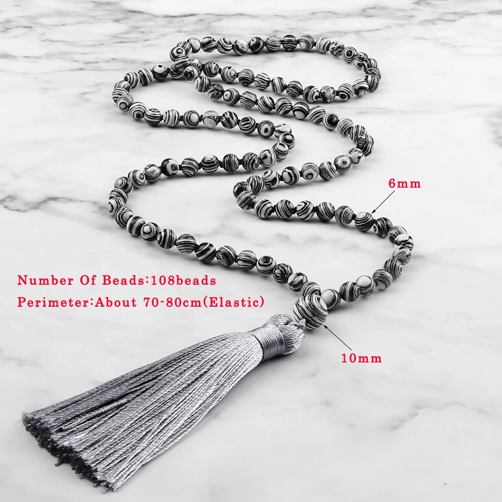 Модные женские богемные Этнические украшения 6 мм 108 бусин натуральный Малахитовый оникс драгоценный камень бисера кисточкой этнические Будды ожерелье