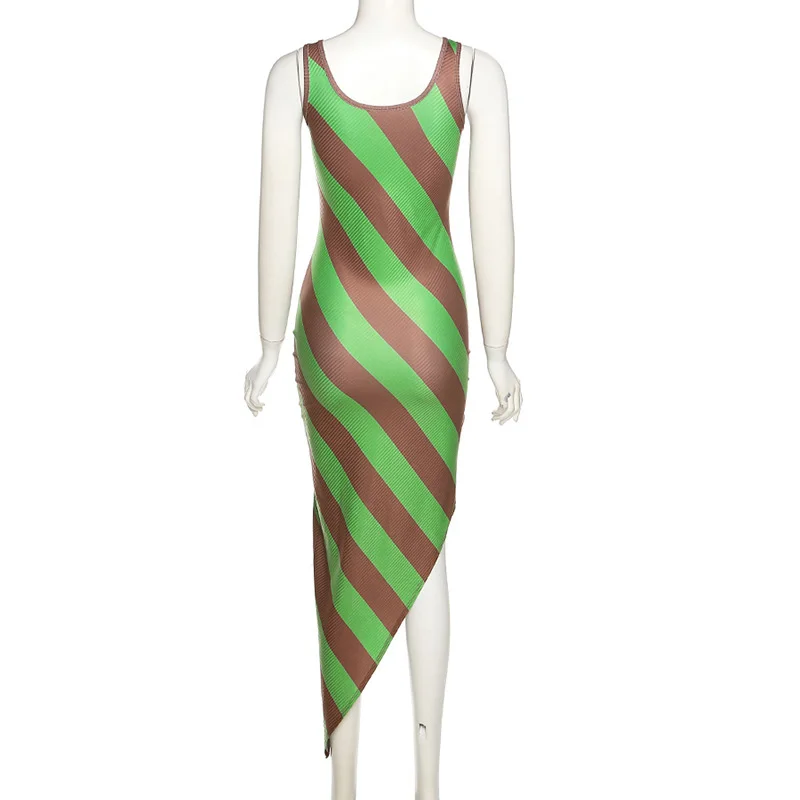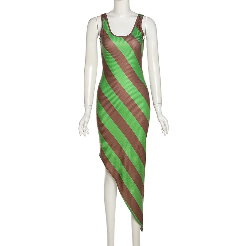 2022 весеннее Новое Женское платье с круглым вырезом, без рукавов, контрастная полоска, модное облегающее платье средней длины с открытой спиной, вечерние платья в уличном стиле