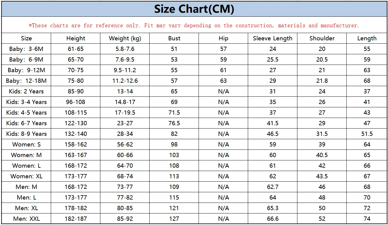 * Каждый размер включает в себя: 1 Топ (комбинезон для ребенка)