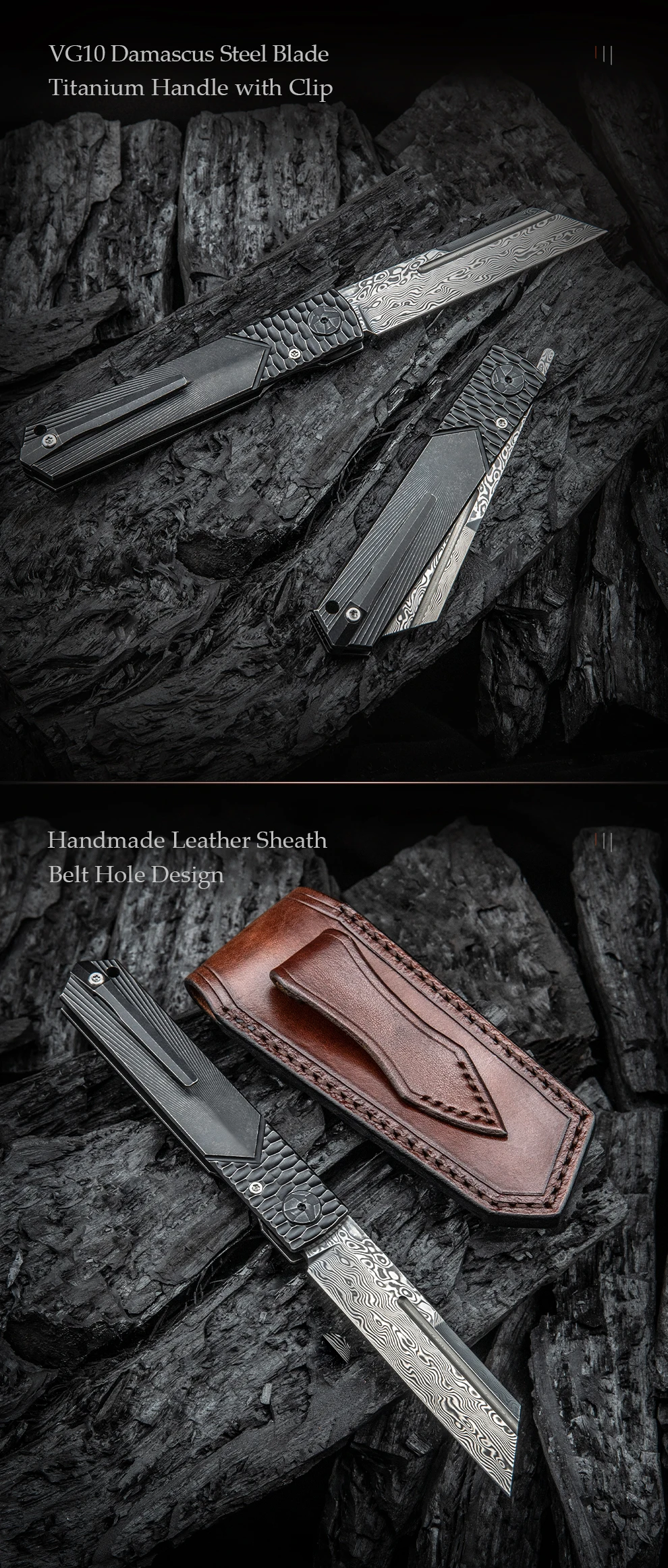 TRIVISA Дамасская Современная Higonokami-титановая ручка с зажимом