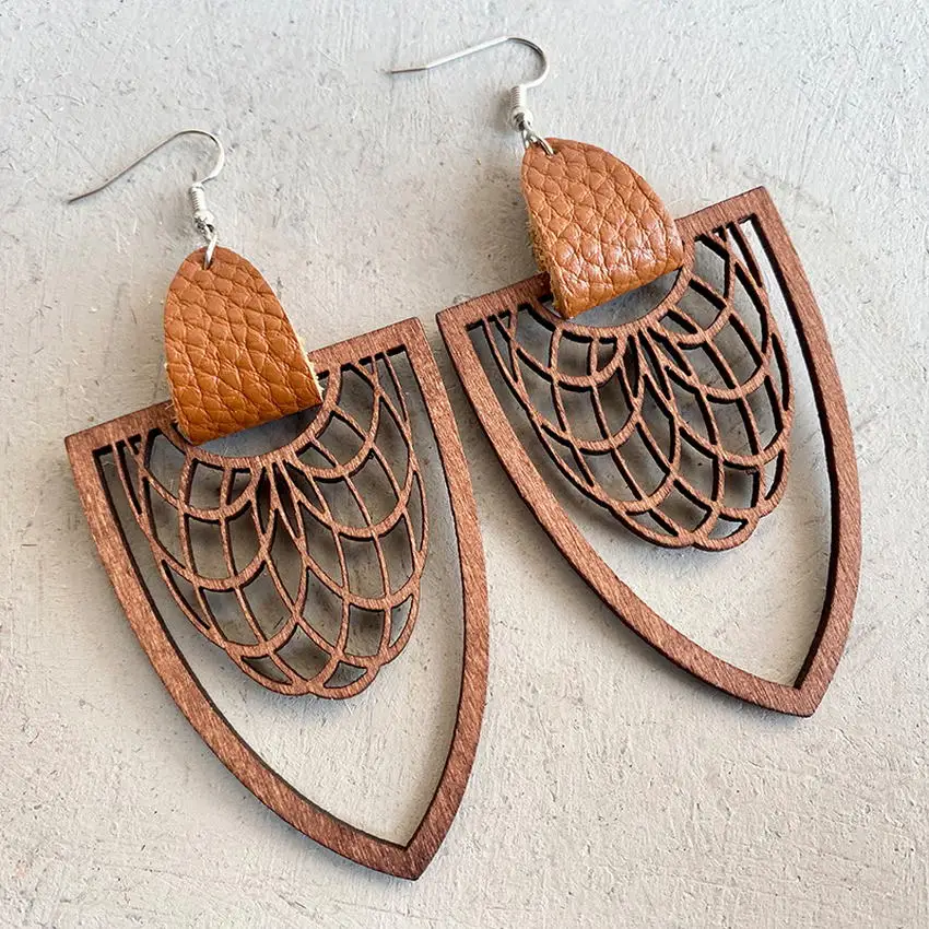 Замысловатые плетеные кожаные деревянные серьги для женщин, новинка 2022, массивные серьги со стрелкой, ювелирные изделия, оптовая продажа