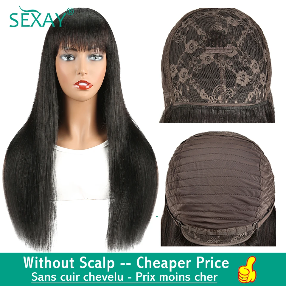 Sexay волнистые челка из человеческих волос парик Необработанные индийские прямые челка из человеческих волос парики Поддельные головы 10-24 дюйма 200 плотность человеческие парики для женщин