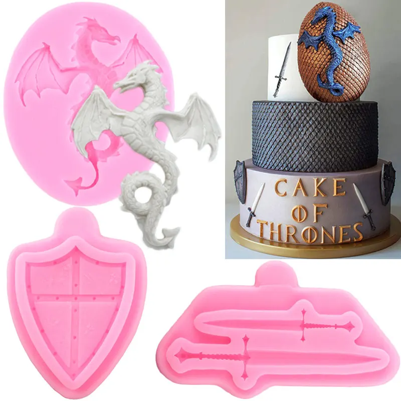 Дракон силиконовые формы помадки мечи щит битва плесень престолов украшения торта инструменты кекс шоколадные конфеты форма для полимерной глины