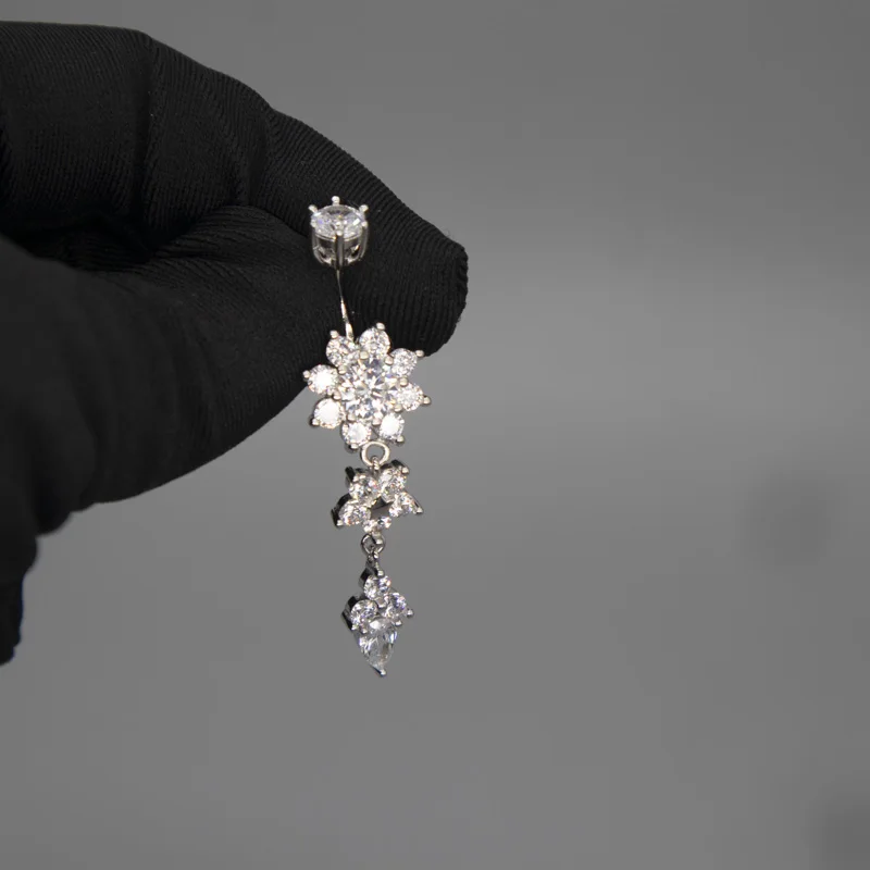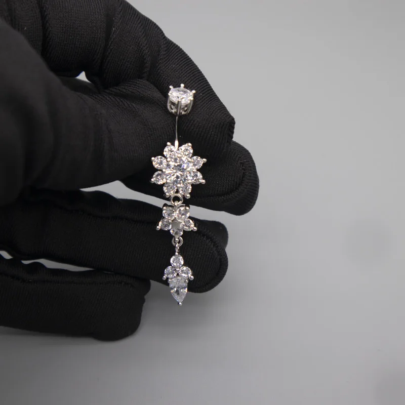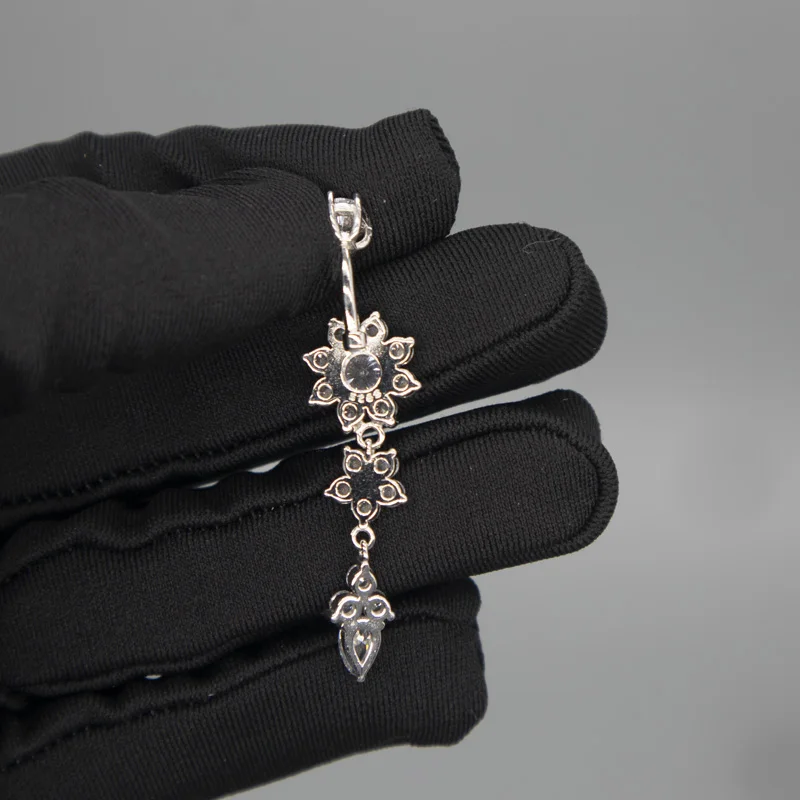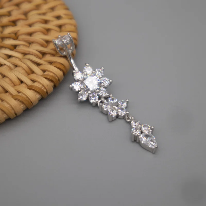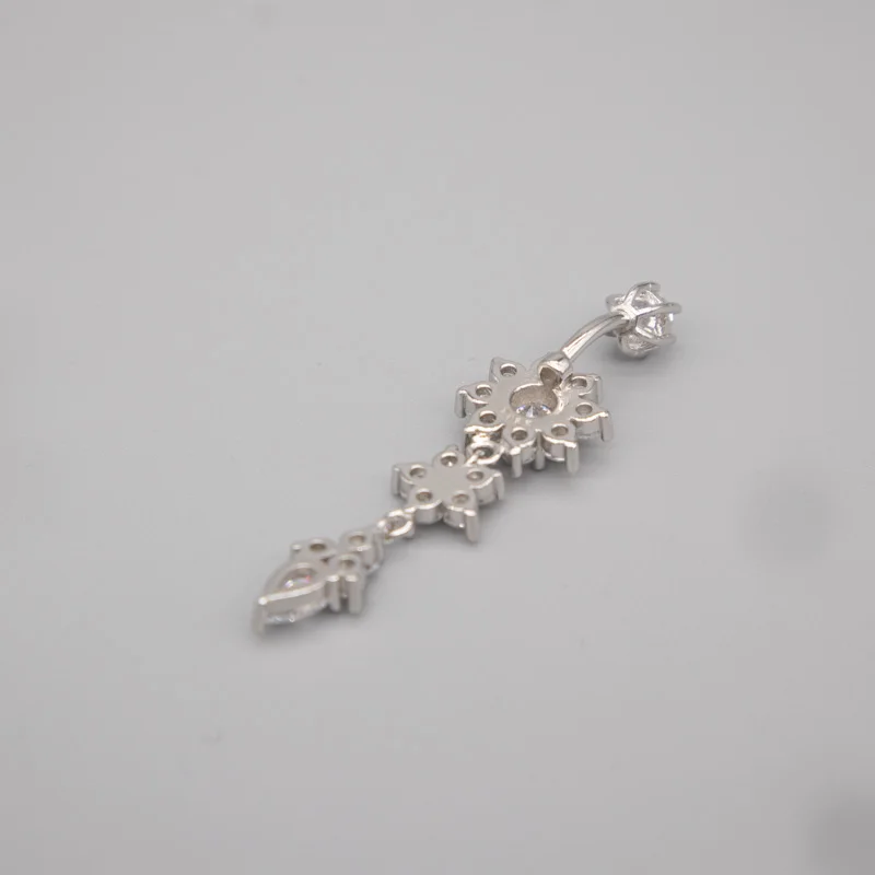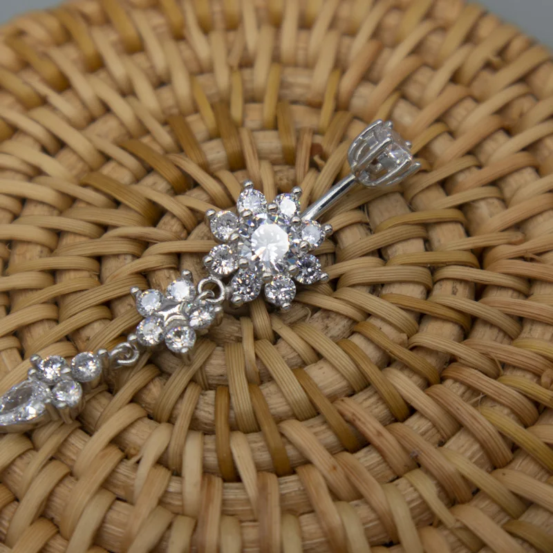 Navel Piercing Silver 925 Sun Flower Snowflake Dangle Belly Bar Body Jewelry Decoration Sterling Silver Long 6 8 10 12MM Fine