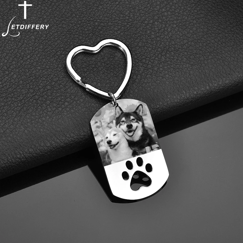 Letdiffery Новый CustomDog тег PersonalizedPhoto EngraveName брелки для домашних животных нержавеющий SteelHeart KeychainsJewelry подарки