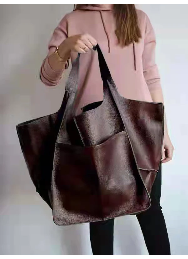 Женская сумка-тоут из натуральной кожи, Женская Большая вместительная сумка на плечо, простая повседневная сумка для дам, шоппер, высокое качество CNY 426,2/Шт/Лот 1