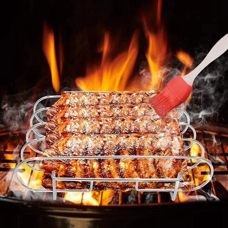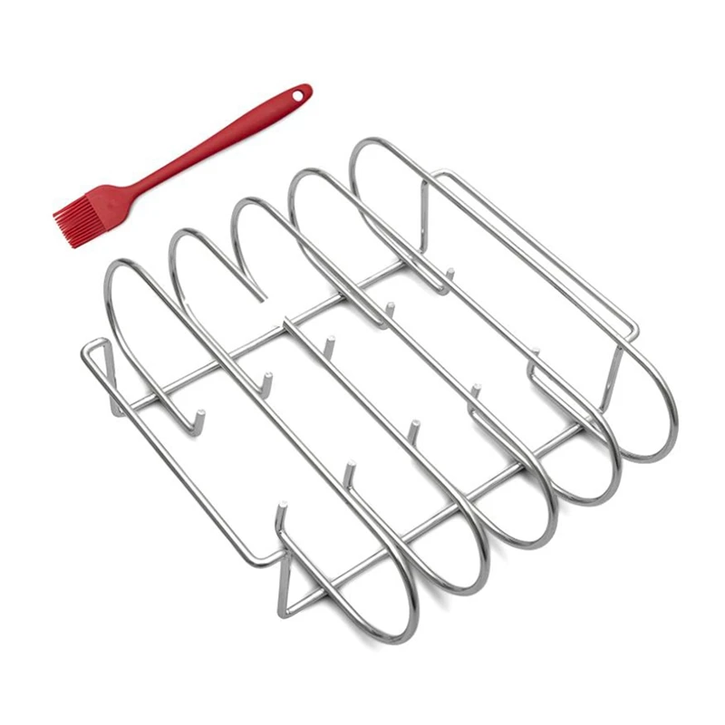 Стойка для обжарки ребер вмещает 4 ребра, слот для барбекю с 2 удобными ручками, для духовки и гриля, и т. Д., с щеткой для напыления соуса